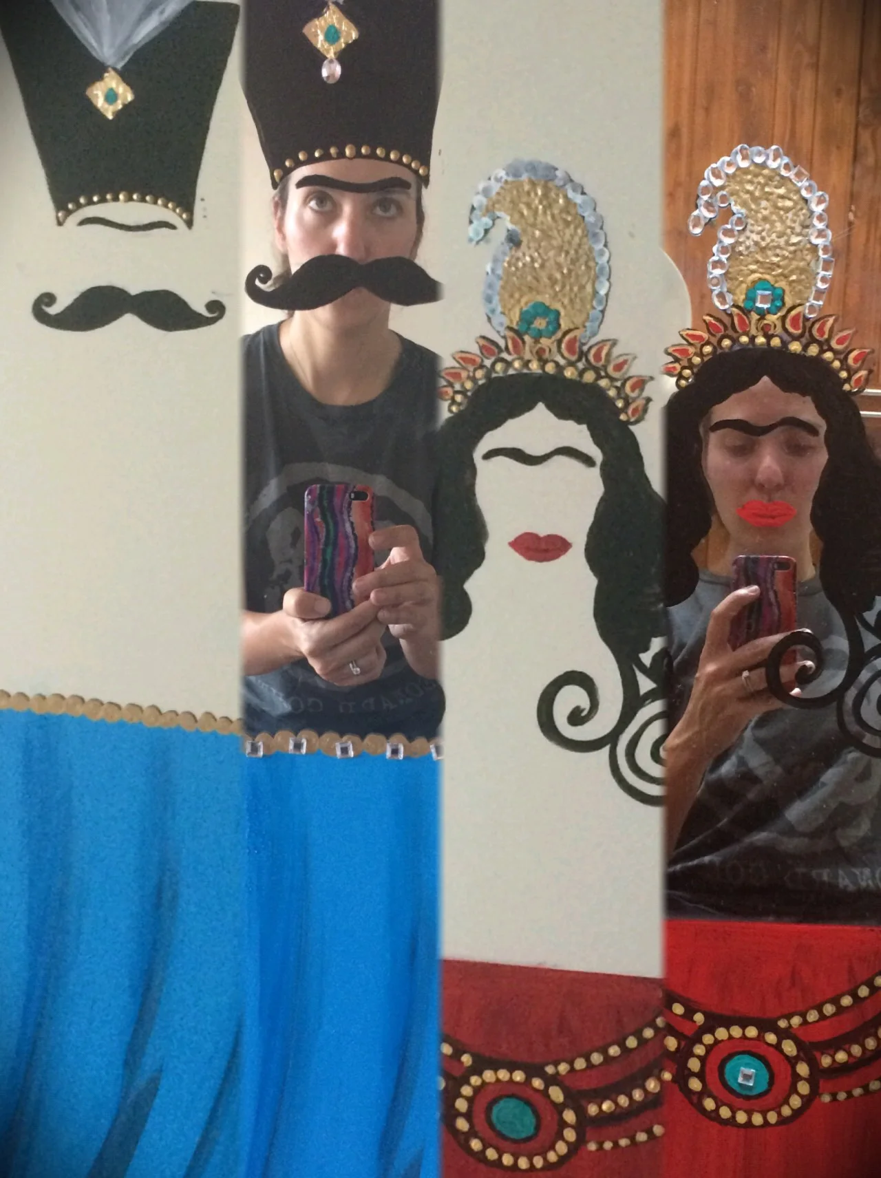 In one of the windows, two mirrors were partially painted in the ancient style of Qajar Art, leaving room for viewers to see their own reflection overlayed with Persian cultural influence - speaking to a sense of cultural hybridity, and a merged reality many in the City of Chicago experience every day. Viewers were invited to snap a picture, use #WhisperingWalls and post images on their social media.
